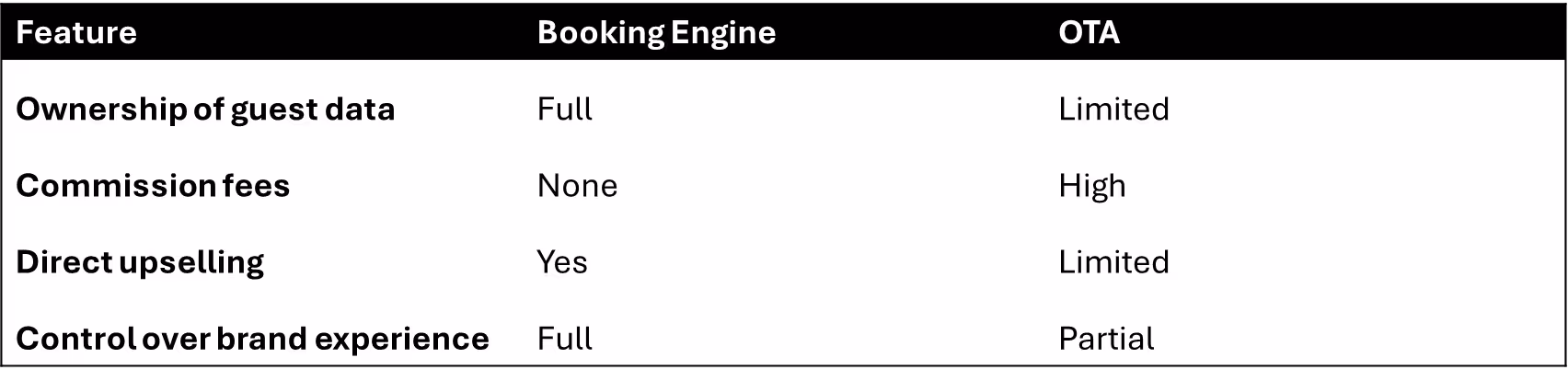 Un motor de reservas optimizado aumenta los ingresos directos y reduce los costos de comisiones de las OTAs.