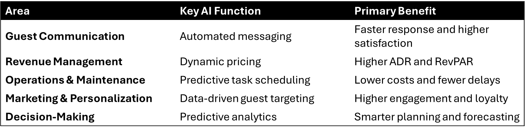 Tabella: Cinque aree principali dell'adozione dell'IA negli hotel